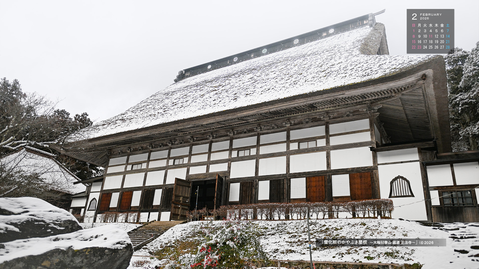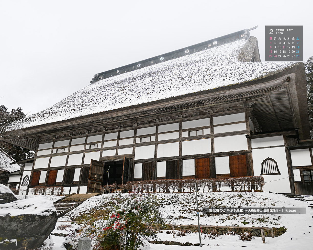 雪化粧のかやぶき屋根 ~大梅拈華山 圓通 正法寺~
