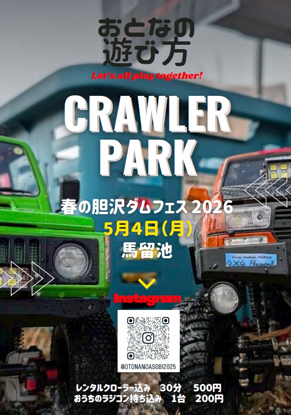 ★参加料:レンタルクローラー込み(30分)…500円、ラジコン持ち込み(1台)…200円