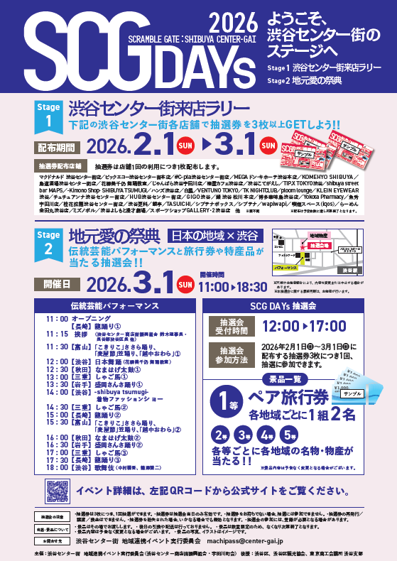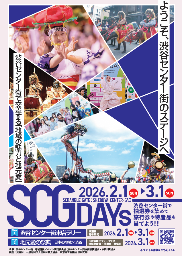 3月1日に東京・渋谷センター街で、地域の魅力発信と地元愛の醸成を目的とした大型イベント「SCG DAYs 2026(SCRAMBLE GATE : SHIBUYA CENTER-GAI)」が開催されます!