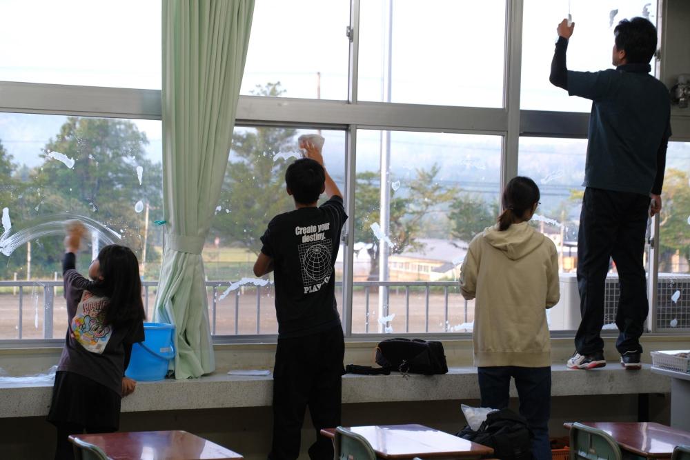 1時間ほどの作業で見る見るうちに校舎内が明るく、きれいになっていきました。学習発表会に向けて、子ども達が張り切って活動できる明るい環境になりました。