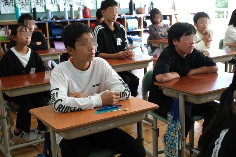 野生のイノシシの捕獲に取り組んでいる地域の方々を講師に、3年生が学習しました。