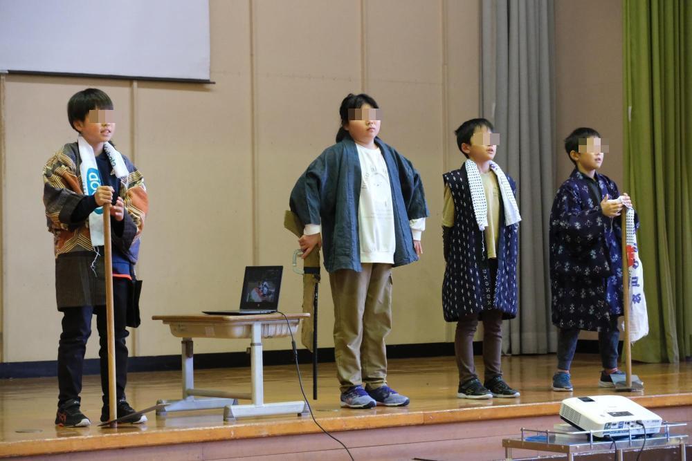 表情豊かに、リズミカルに語られる源義経の最期の物語に、子ども達は引き込まれていました。地域に残る歴史を知るとともに、講談の面白さや相手を魅了する表現方法を知るきっかけとなりました。