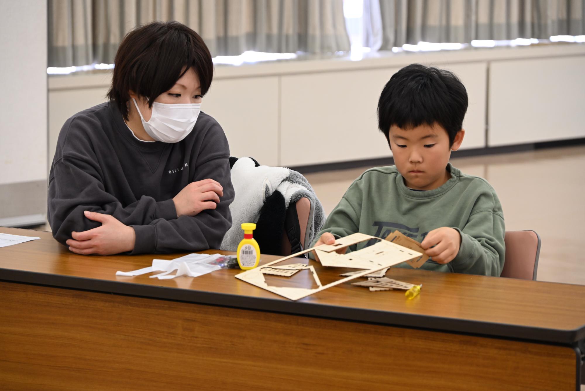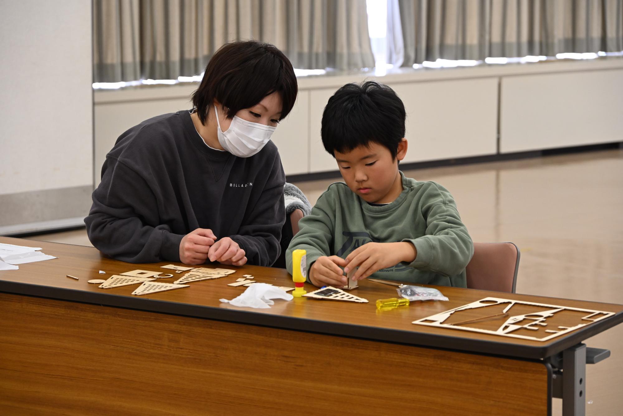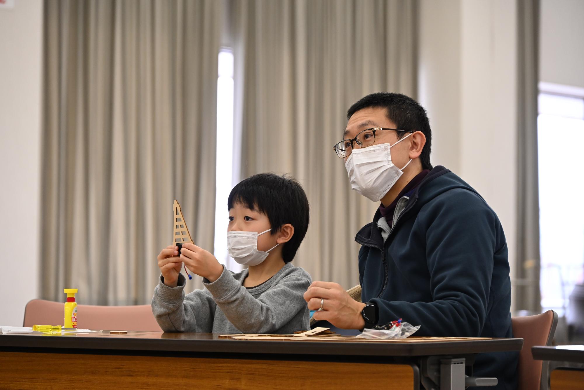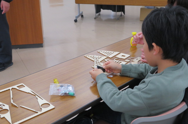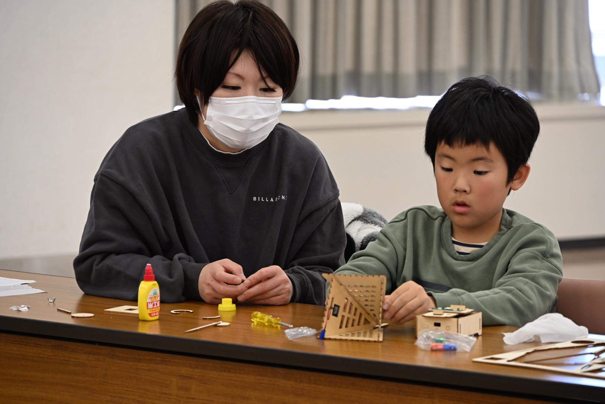 続いて、土台づくりやスイッチ・電池ケースの取り付けを行い、親子で協力しながら作業を進めました。