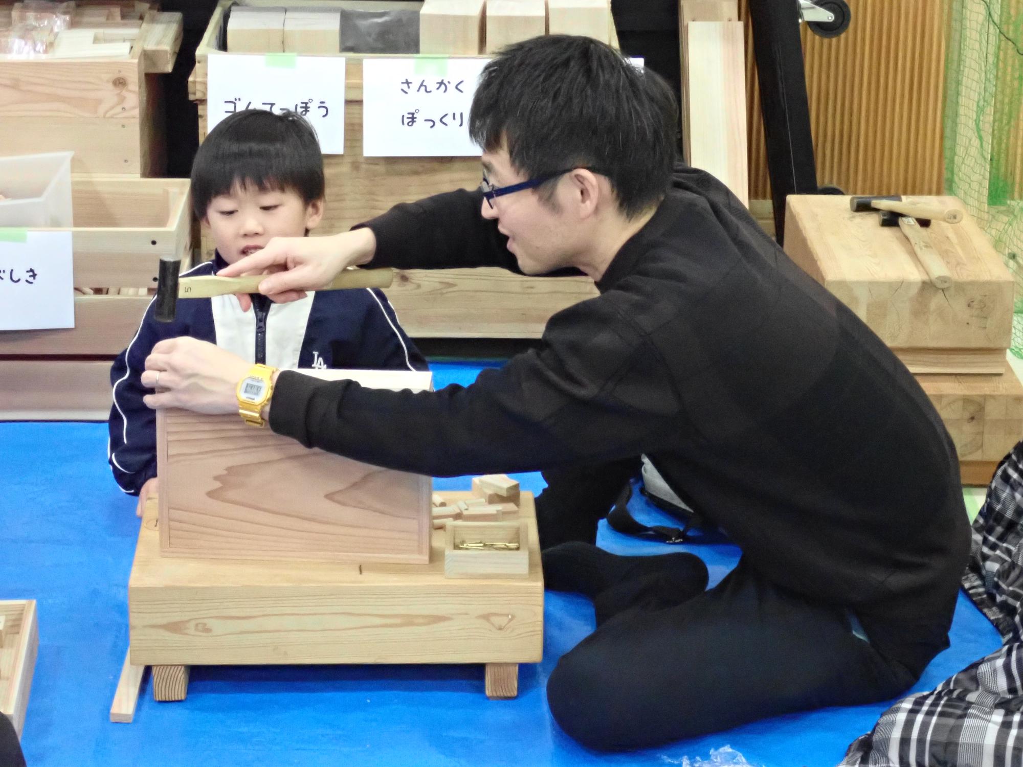 3回目の開催となった今回も、延べ898名の方にご来場いただき、「キッズひろば」には新たに木の雲梯(うんてい)や小さなすべり台が設置され、「木工教室」では、もくもくトレイとリトルジェットが新メニューとして登場しました。